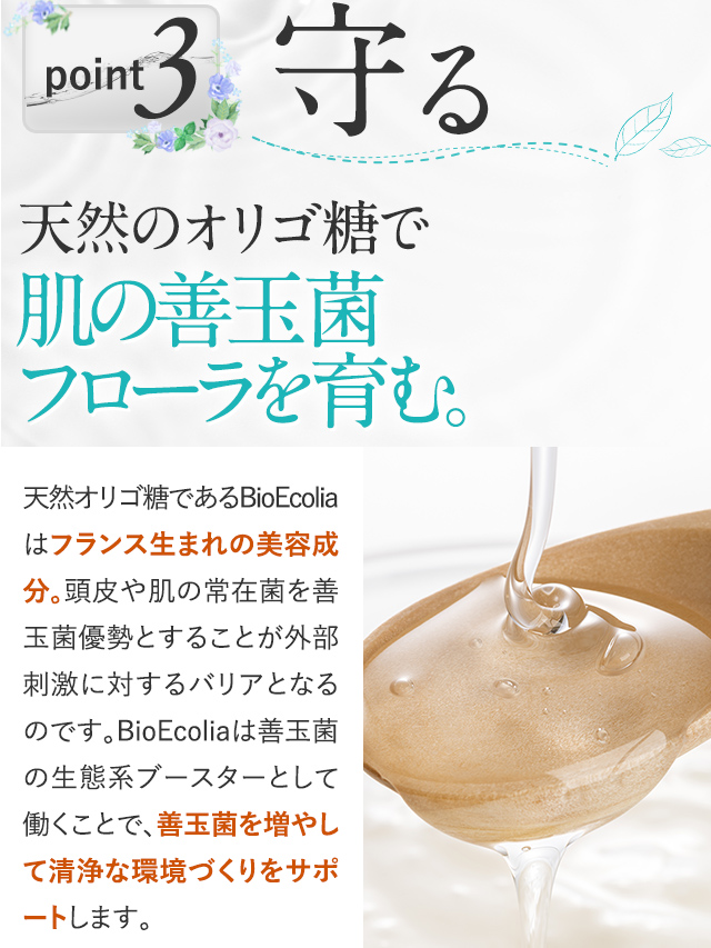 〇セラミドと植物エキスが地肌にうるおいを与え、お肌の状態を整えます。