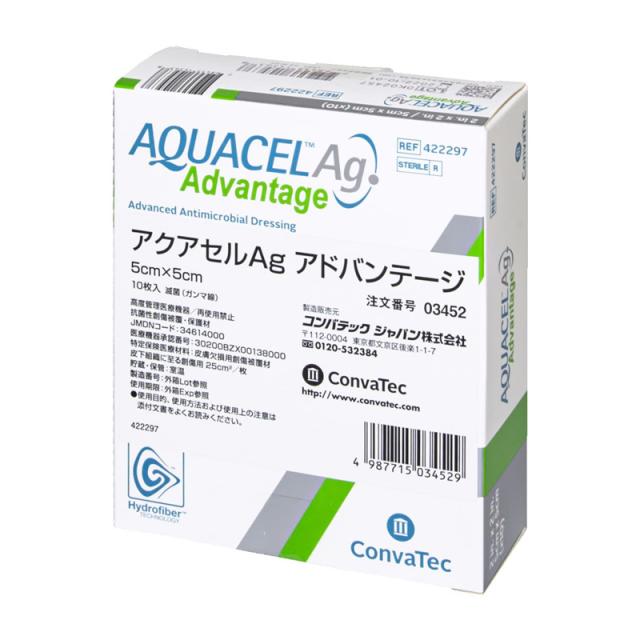 コンバテック アクアセルAgアドバンテージ 5×5cm10枚入【抗菌性創傷被覆・保護材】03452