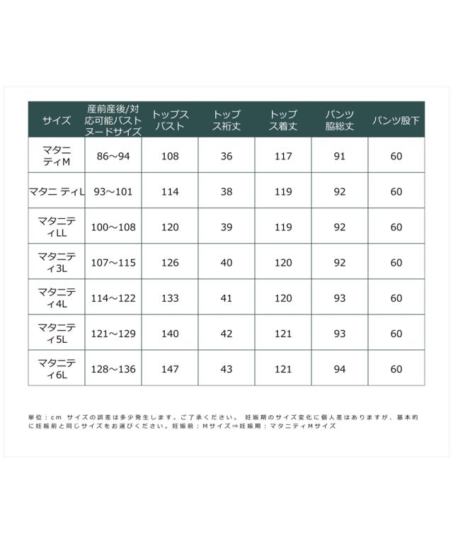 ・ マタニティパジャマ(マタニティM〜マタニティL)はこちら ・ マタニティパジャマ(マタニティLL〜マタニティ3L)はこちら ・ マタニティパジャマ(マタニティ4L〜マタニティ6L)はこちら |