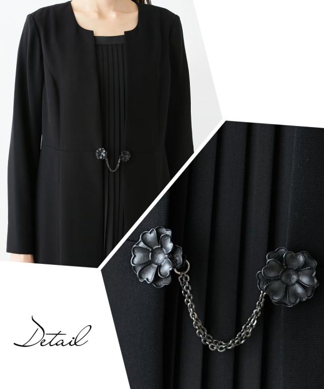【喪服・礼服】防しわフロントプリーツアンサンブル風前開きワンピース 大きいサイズ有