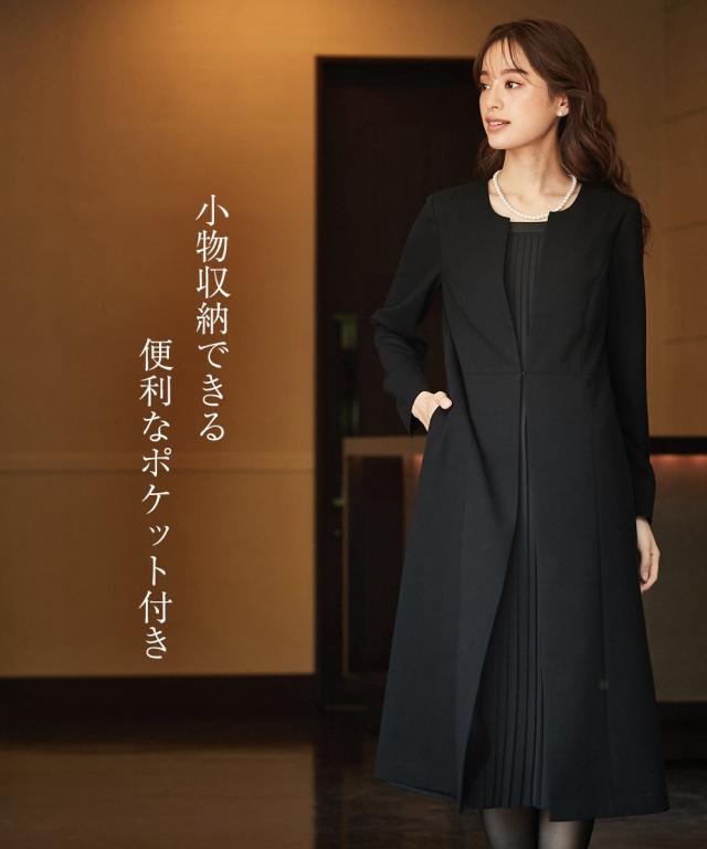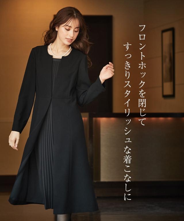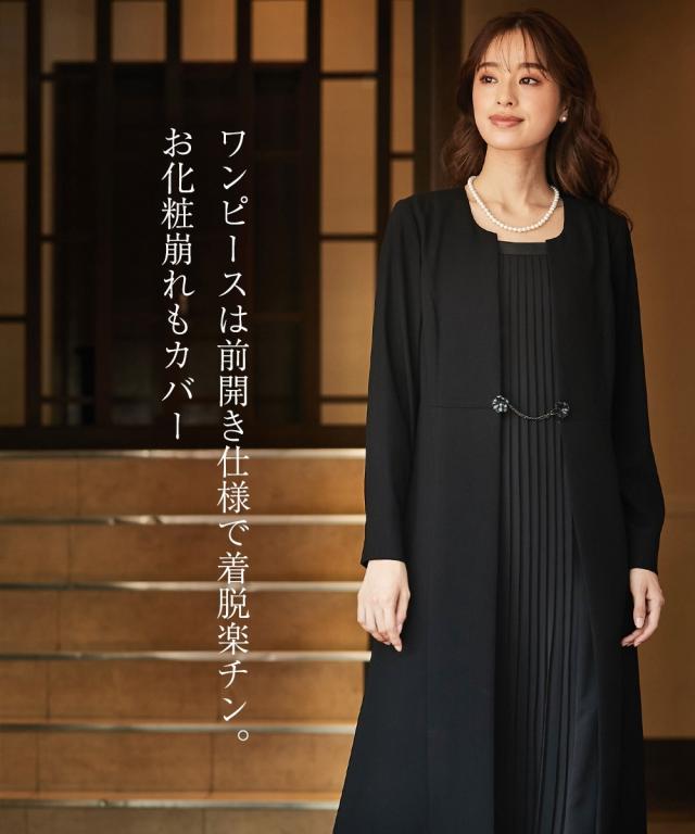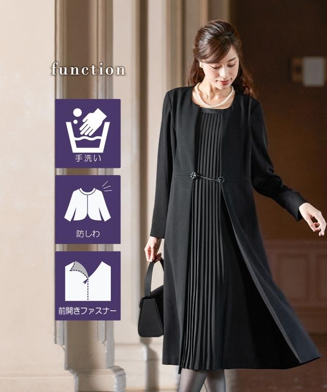 【喪服・礼服】防しわフロントプリーツアンサンブル風前開きワンピース 大きいサイズ有