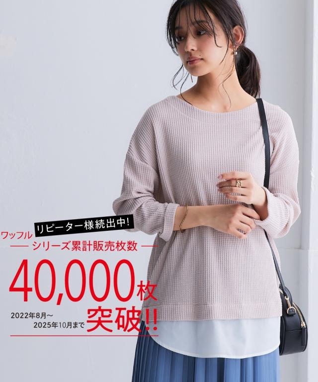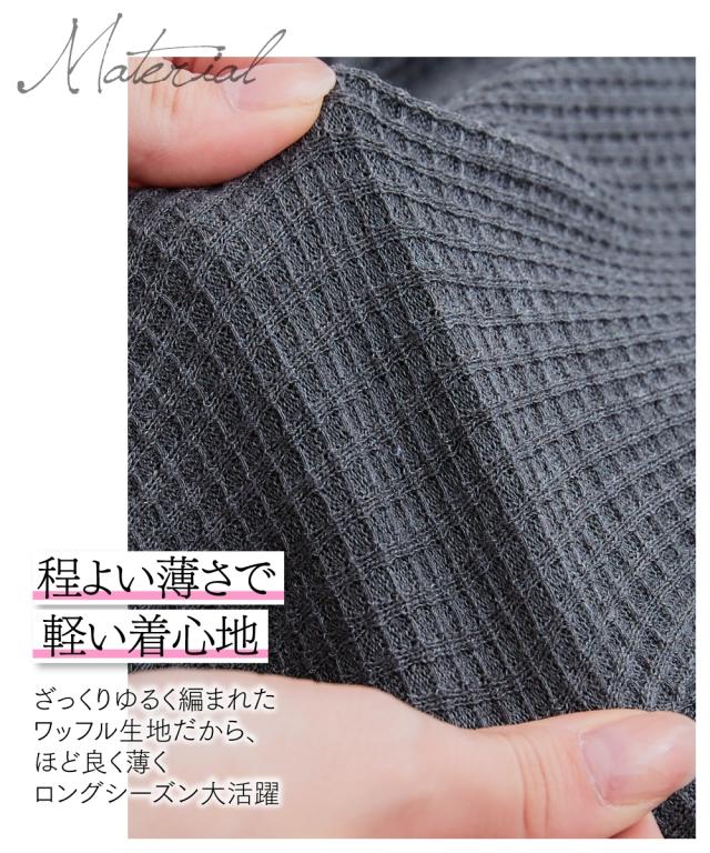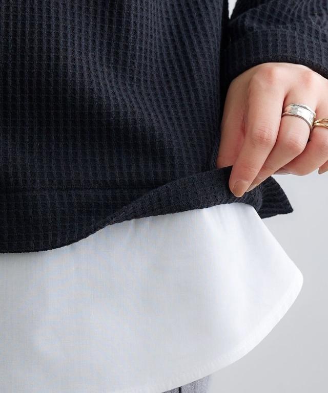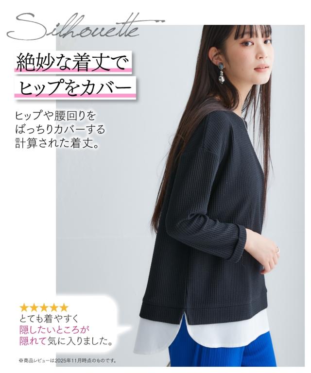 品質=【本体】ポリエステル65%・綿35%(カットソー ワッフル)【別布部分】ポリエステル80%・綿20%(織物 平織)袖口は折り返したデザインです。伸ばすことはできません。この商品は着丈に前後差のあるデザインです。着丈は後ろ中心の寸法を記載しています。※この商品は好評のため長期間、販売しており、生産時期によって下げ札がついているものとついていないものがあります。 原産国:中国製 備考:単位:cm ※商品サイズは、仕上がりサイズです。 ※サイズの誤差は多少発生します。