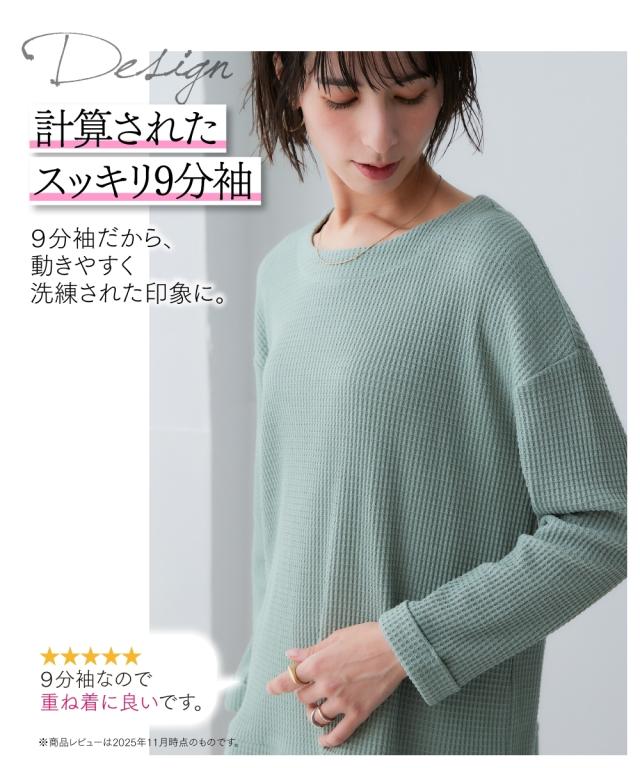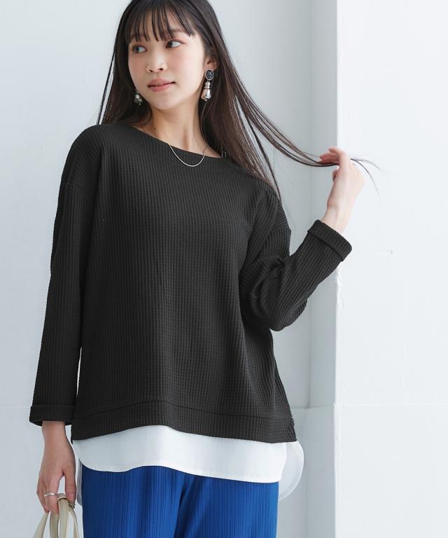 Tシャツ カットソー 大きいサイズ レディース ワッフル素材重ね着風 トップス 9分袖 3L/4L/5L/6L ニッセン nissen