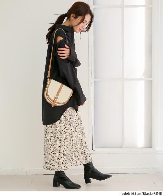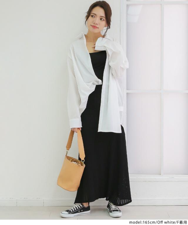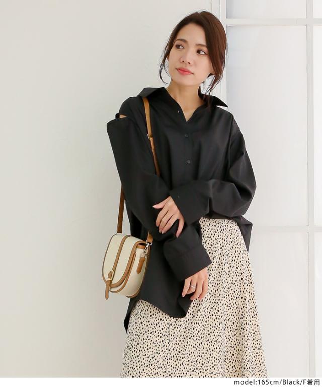 | 今シーズントレンドの抜け感のある肩あきブラウス。肩部分にスリットを入れ、ヘルシーに肌見せできます。ゆったりとしたシルエットとややハリ感のある素材で、レイヤードや羽織としても活躍。ボタンを留めるとベーシックなシャツスタイルとして着回せ、デイリーに活躍してくれるアイテムです。 |
