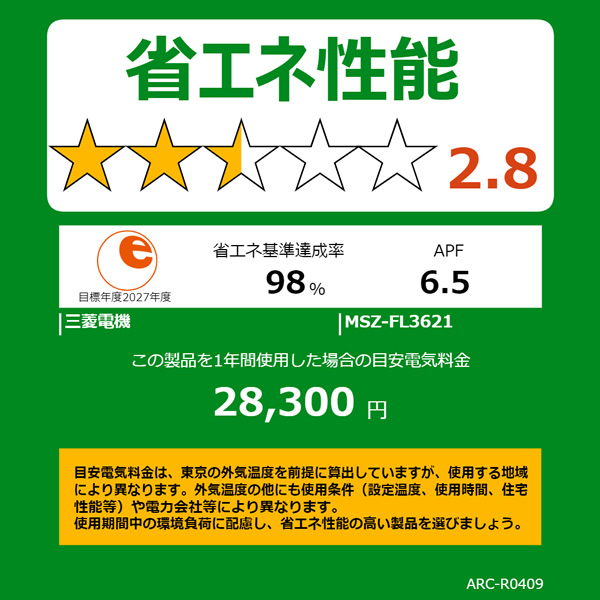 APF(通年エネルギー消費効率):6.5
