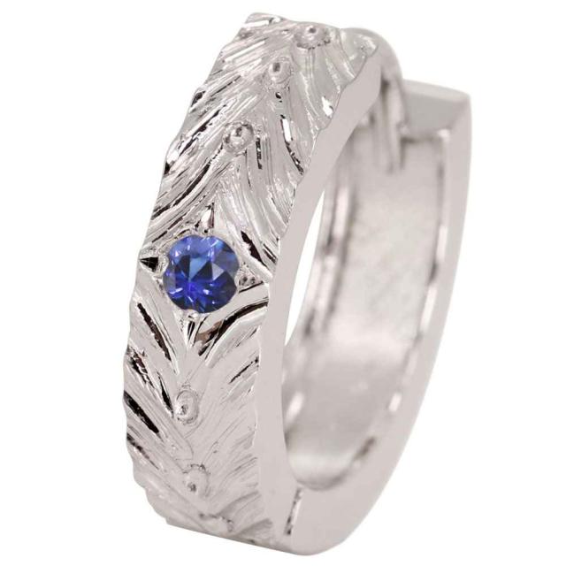 ピアス メンズ シルバー フープピアス 片耳用 中折れ式 サファイア 男性 人気 大人 彫り かっこいい
