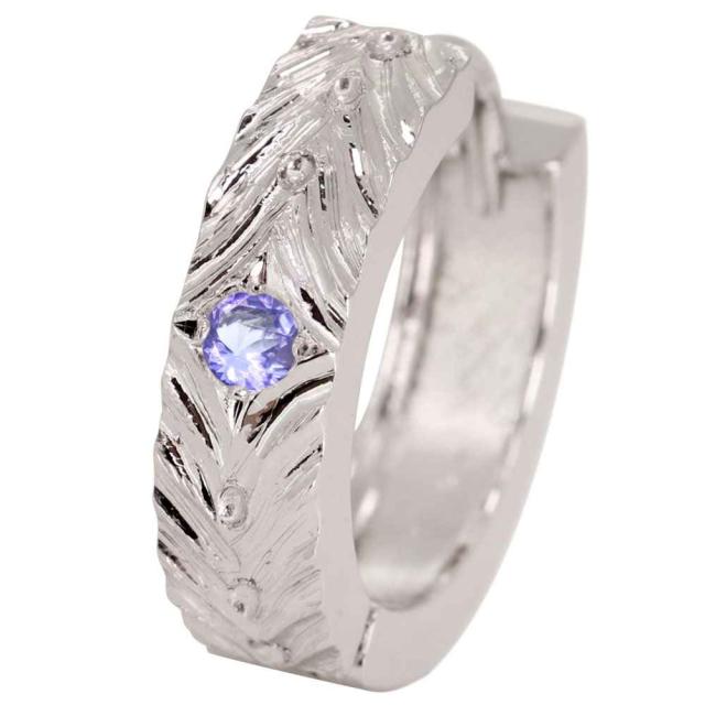 ピアス メンズ シルバー フープピアス 片耳用 中折れ式 タンザナイト 男性 人気 大人 彫り かっこいい