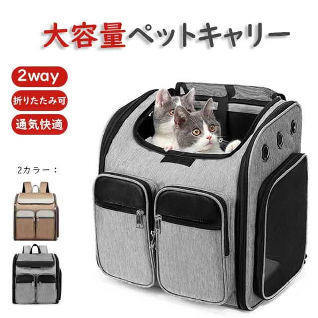 猫 小型犬 ペットキャリーバッグ リュックサック キャリーバッグ マット付 折りたたみ 通気性抜群 手提げ お出かけ おしゃれ 2way 安全ロープ付 2匹収納 ペット用リュック 防災 病院 アウトドア アイリスオーヤマ 多頭飼い 避難