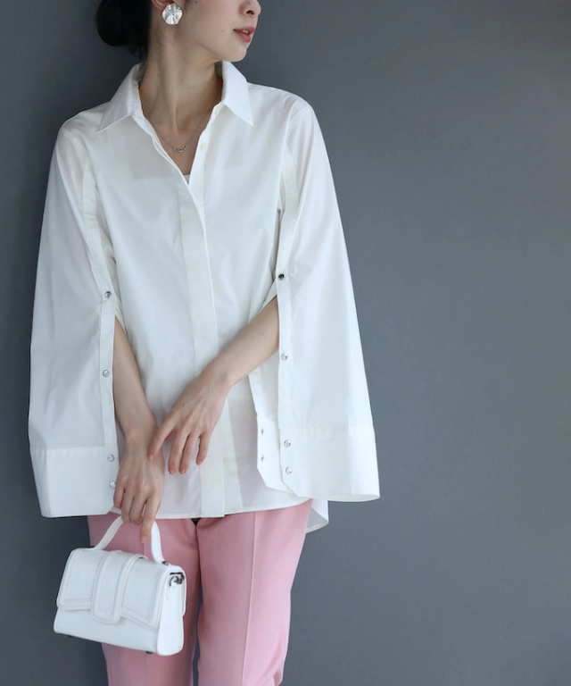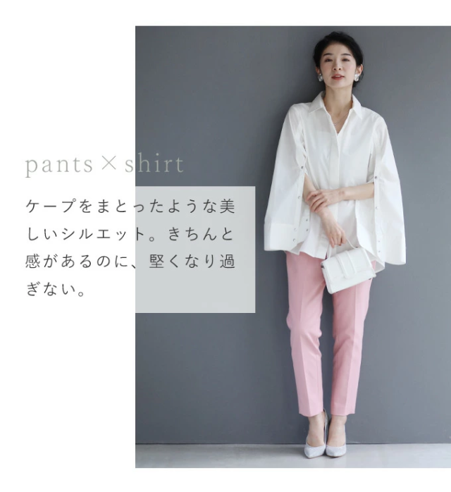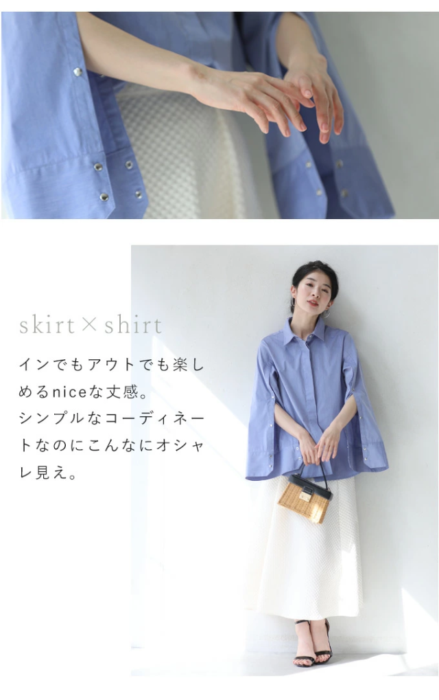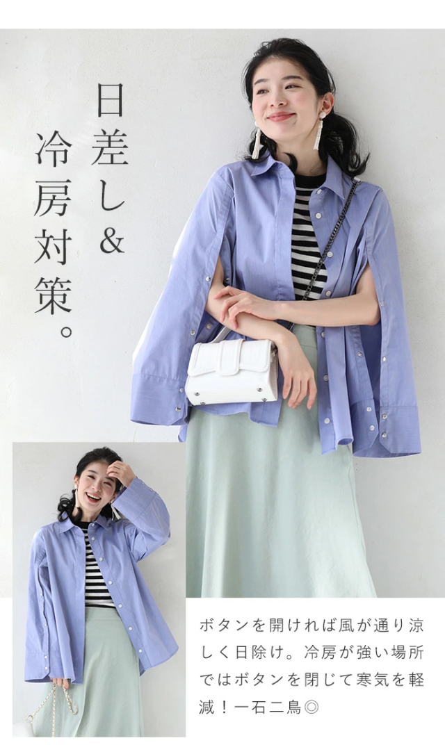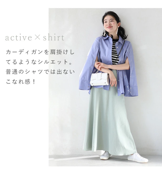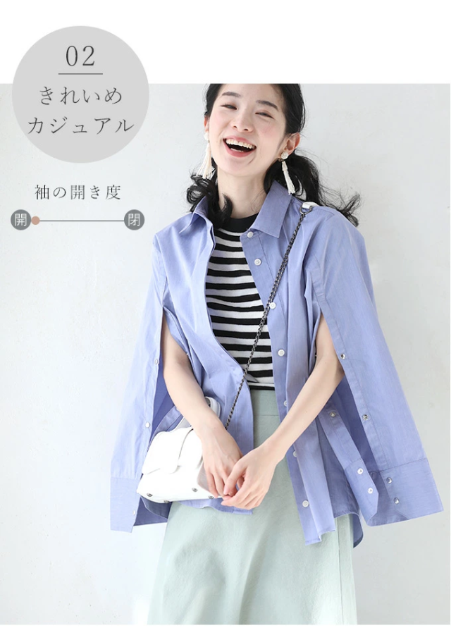 fzp00077od 新作 新着 再入荷 CAWAII FRENCHPAVE フレンチパヴェ エレガント ベーシック カジュアル 可愛い かわいい カワイイ おしゃれ オシャレ お洒落 個性 個性的 定番 ベーシック 大人かわいい 大人可愛い 上品 女性らしい デザイン スタンダード ナチュラル きれいめ キレイめ シンプル フェミニン レディース レディースファッション 大人 ママ ミセス 30代 40代 50代 60代 ケープ風シャツ トップス 長袖 長そで ロング袖 S M L フリーサイズ フリー 小さめ 小さめサイズ小さい 小さいサイズ 低身長 痩せ ほっそり 小柄 細身 標準サイズ F サイズ自由 春服 春物 体型カバー ホワイト 白 白色 ブルー 青 水色 ワンカラー ワントーン 日常着 普段着 日常使い