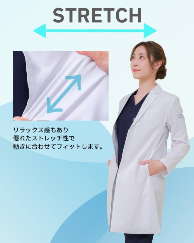 MIZUNO ミズノ ドクターコート(女性用) MZ-0306 透け防止 制電 制菌機能搭載 医療白衣 【ドクターコート】【7分袖】【女医】【調剤薬局】【透け防止 制電制菌機能搭載制電制菌】 チトセ