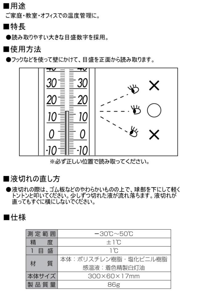 温度計 プラスチック製 30cm 温度計 温度 プラスチック製 室内 家 部屋 オフィス 会社 教室 省エネ 温度管理 壁掛け
