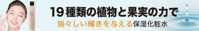持続的潤い:19種類の植物と果実の恵みをバランスよく配合、あらゆる角度からアプローチ。とろみのある感触が、肌をしっとり包み、持続的なうるおいを与え、艶とハリのあるお肌を実感させてくれる化粧水。