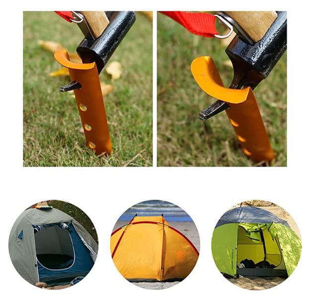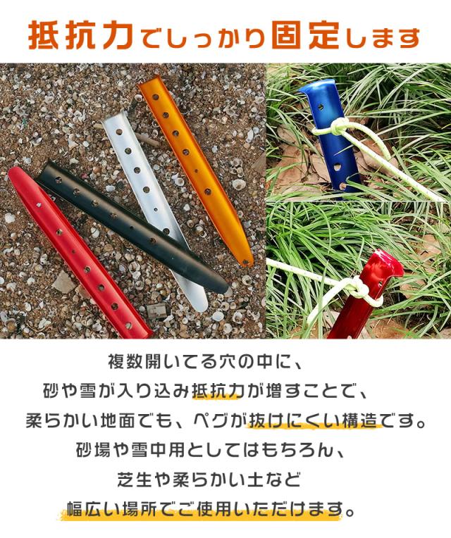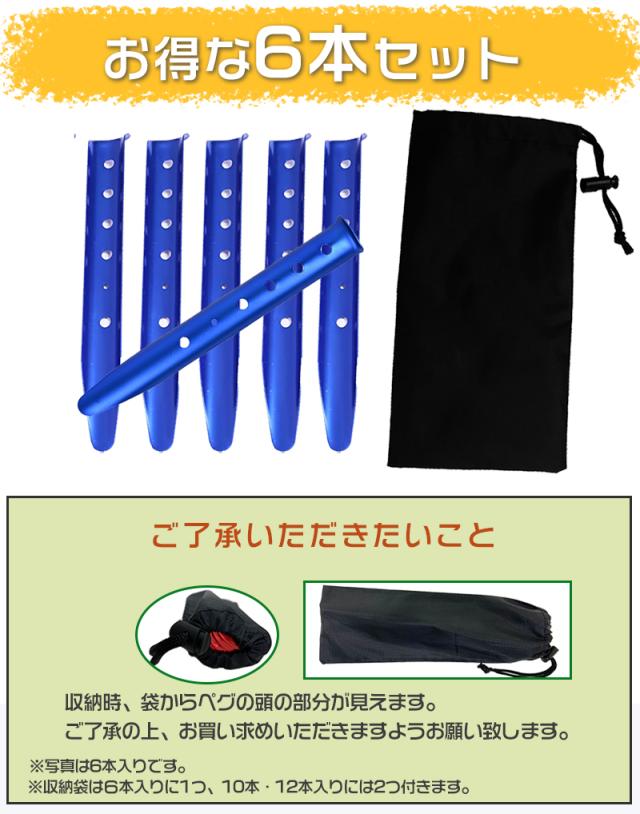 ペグ 6本セット サンドペグ スノーペグ U字型ペグ 31cm オレンジ 赤 青 白 黒 U型 テントネイル ビーチ 砂浜 雪 キャンプ用 軽量 携帯 アウトドア 野外 携帯に便利 収納袋付き