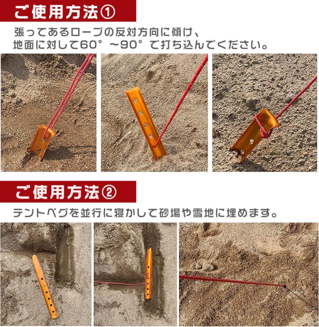 軽くて丈夫な『砂・雪用ペグ』の6本セットです。