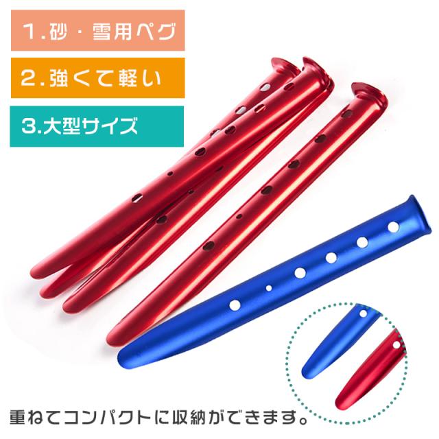 軽くて丈夫な『砂・雪用ペグ』の10本セットです。