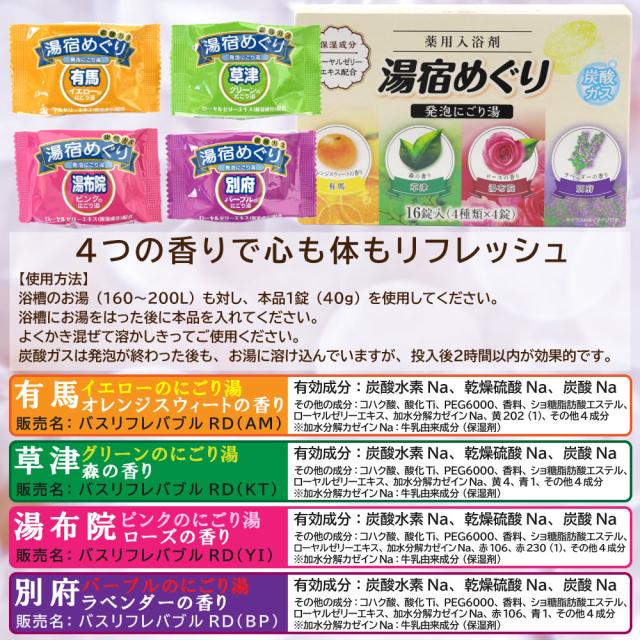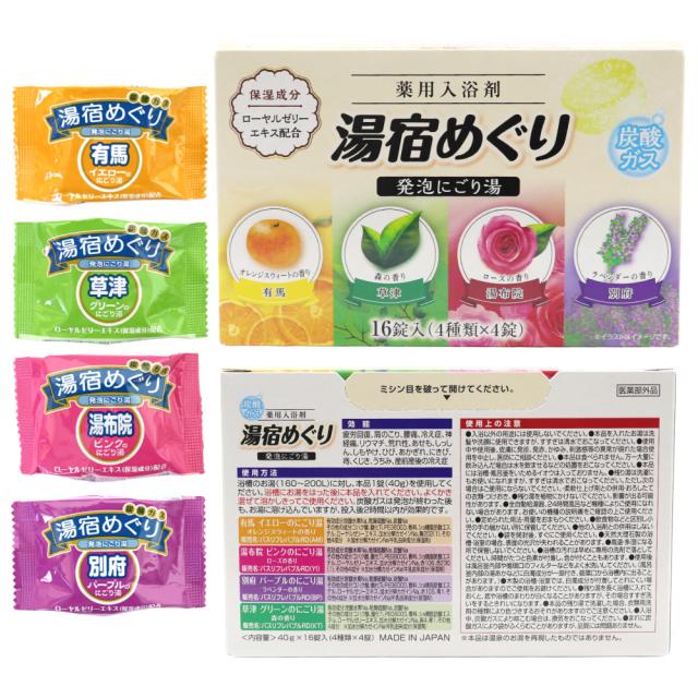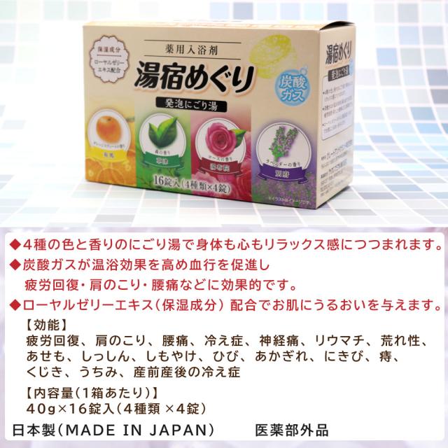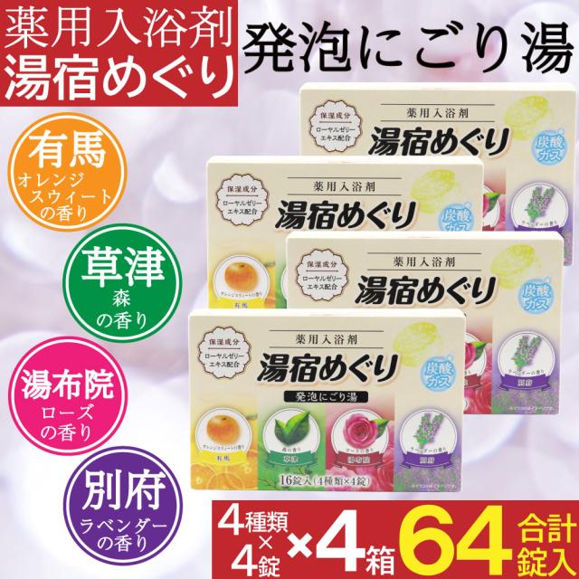 入浴剤 にごり湯 薬用 発泡入浴剤 16錠入(4種×4錠)×4箱セット(計64錠) 疲労回復 肩こり 腰痛 医薬部外品 日本製