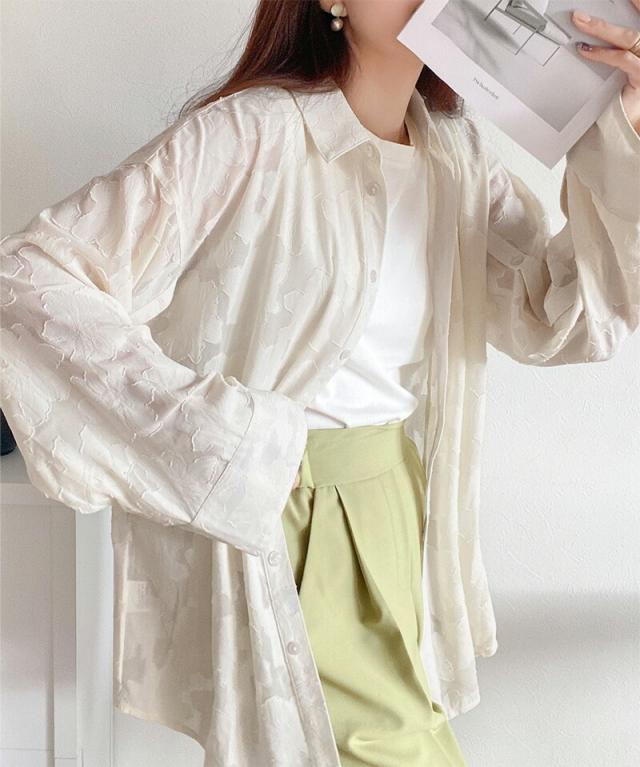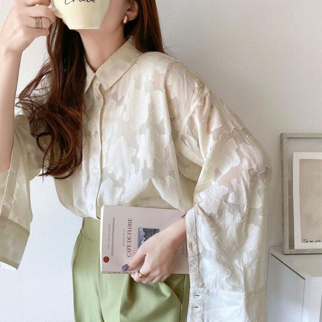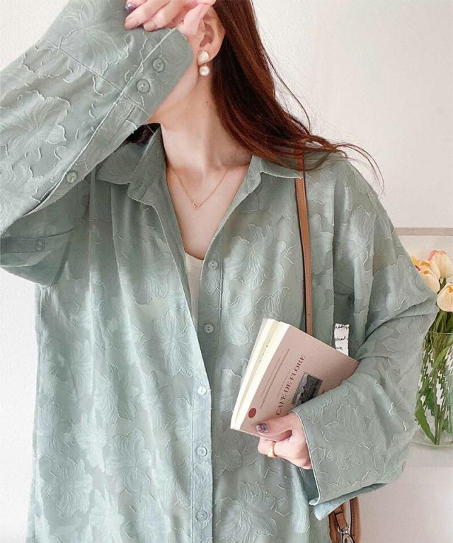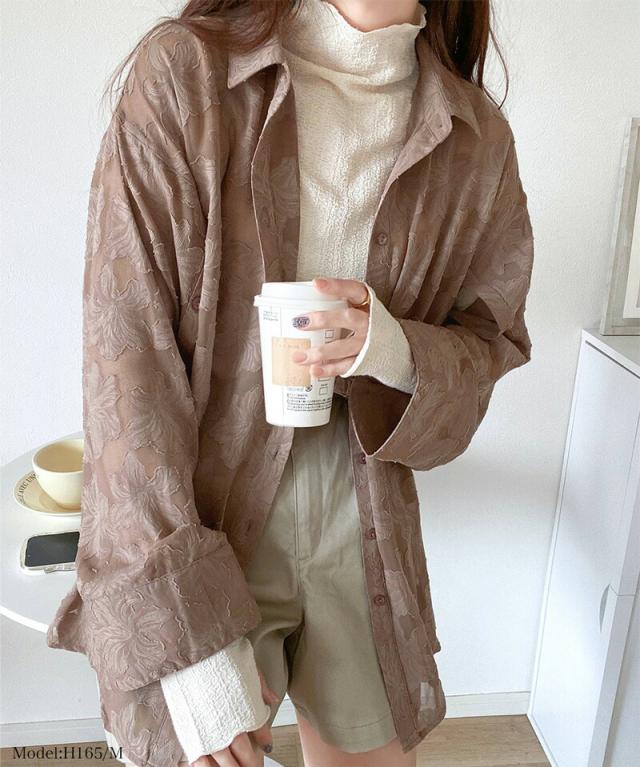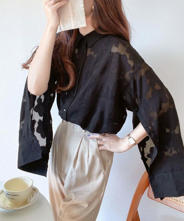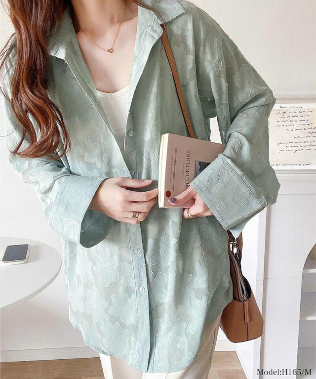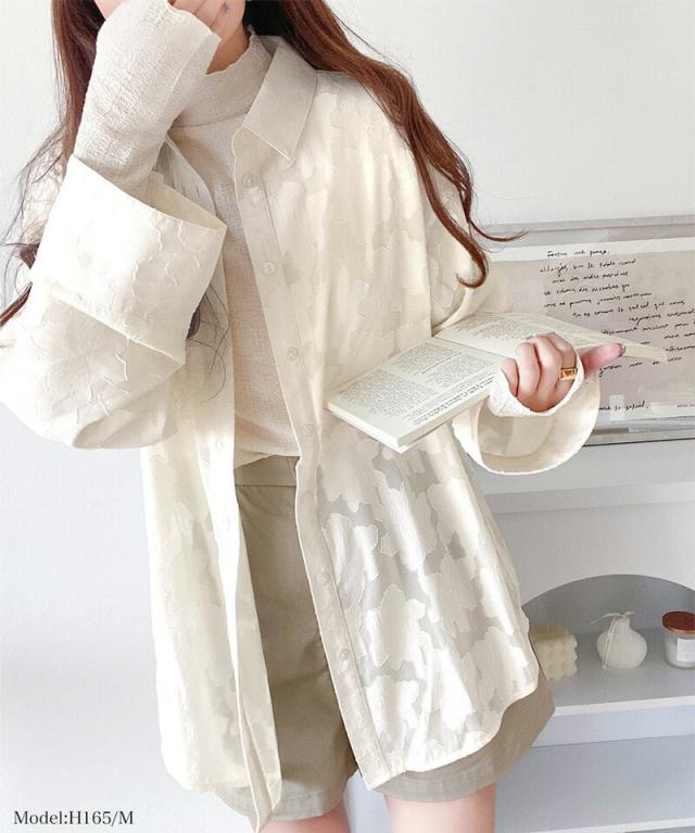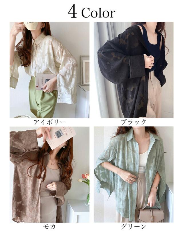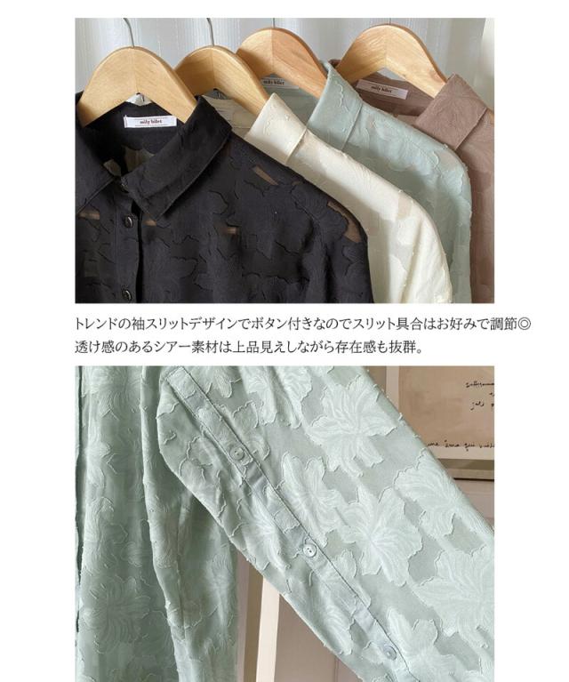 クラシカルエルフ 冬新作 トップス シャツ レディース ブラウス シアー ジャガード 花柄 2way 袖スリット スリットスリーブ オーバーサイズ 羽織り ライトアウター 透け感 レイヤード ゆったり きれいめ 体型カバー 長袖 大きいサイズ 2023ss mi1139014