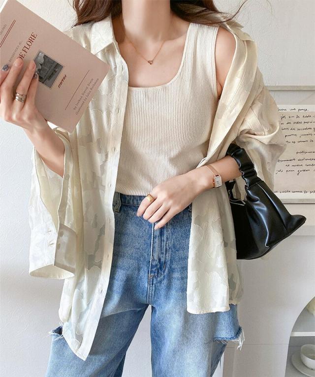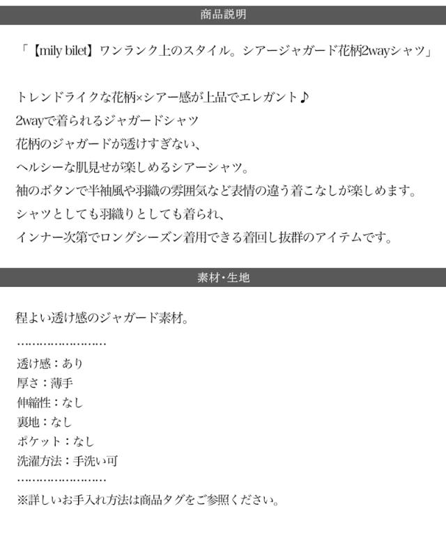 ★【mily bilet】ワンランク上のスタイル。シアージャガード花柄2wayシャツ★