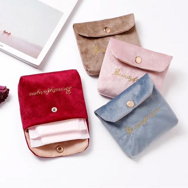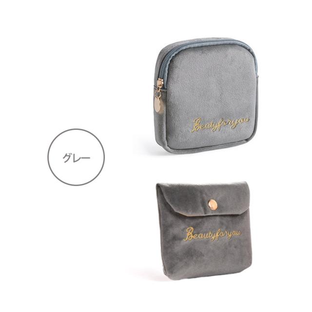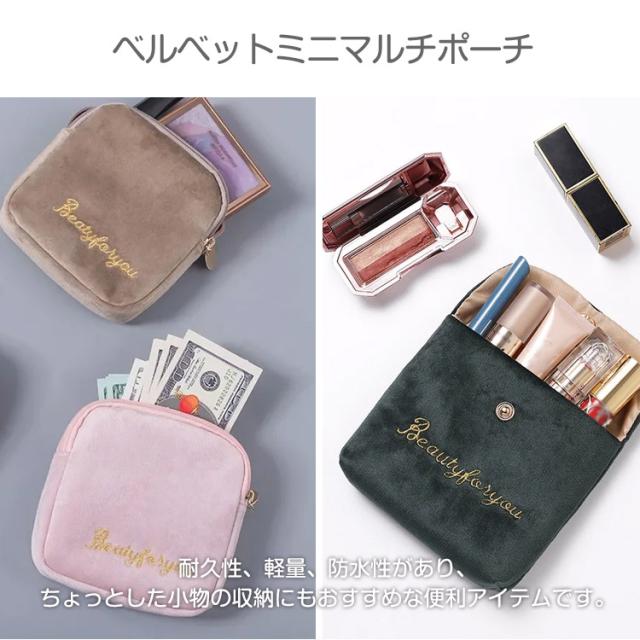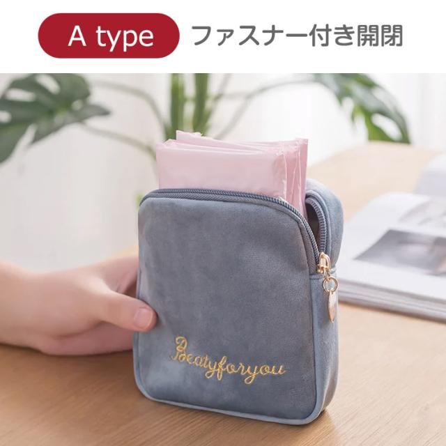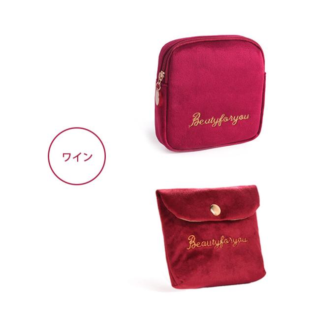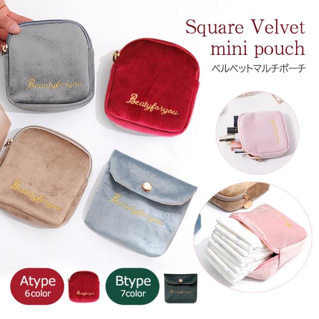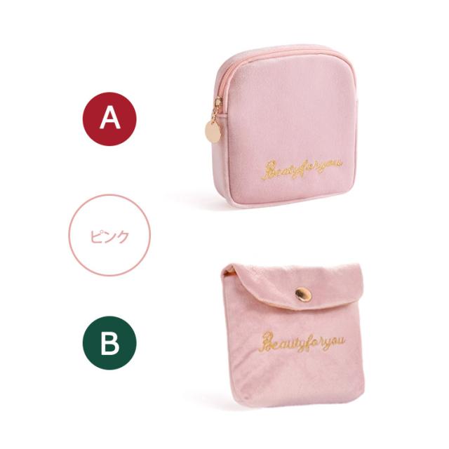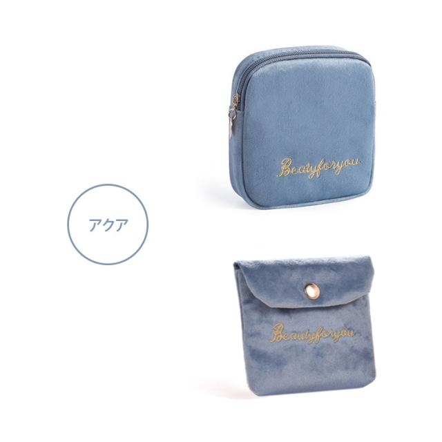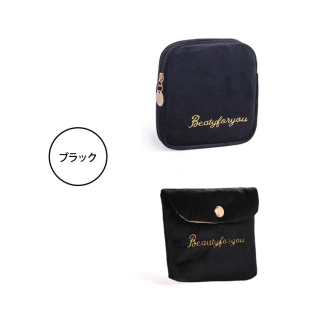 ポーチ 2Type 小物入れ メイクポーチミニティッシュ 生理用ナプキン収納 サニタリーポーチ 機能的マチあり 仕分け 旅行 ジム ポケット スクエア ベロア素材