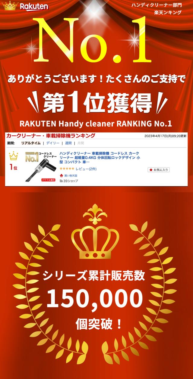 - ハンディクリーナー届きました。 軽くて使い勝手が良いです。 なるべく長く使用していきたいです。 クリーナーの掃除も欠かさない様に大事に使用します。ありがとうございます。