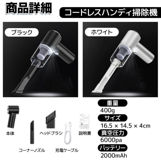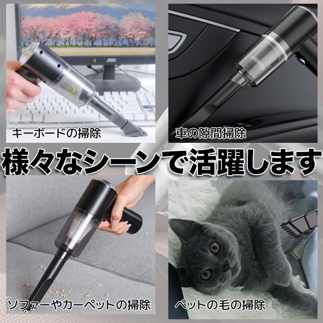 ハンディクリーナー 車載掃除機 コードレス カークリーナー 超軽量0.4KG コンパクト 車用 コードレス 充電式 6000PA吸引力 USB急速充電 ハ HEPAフィルター