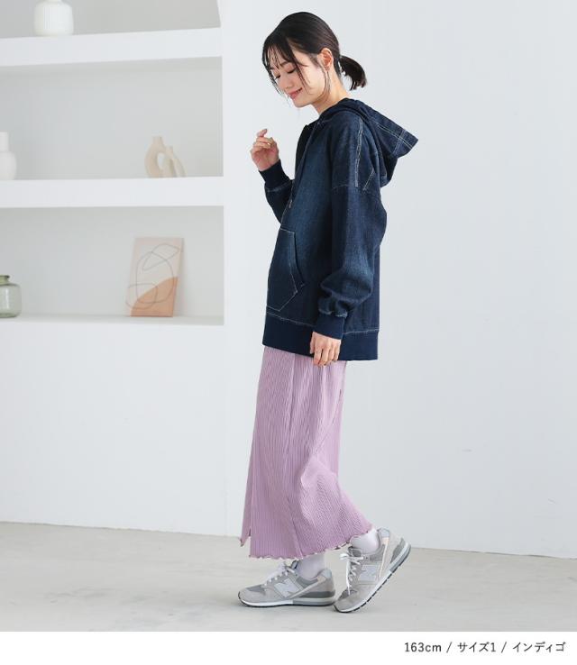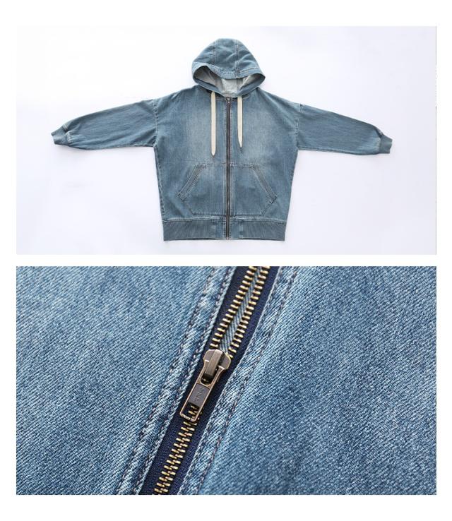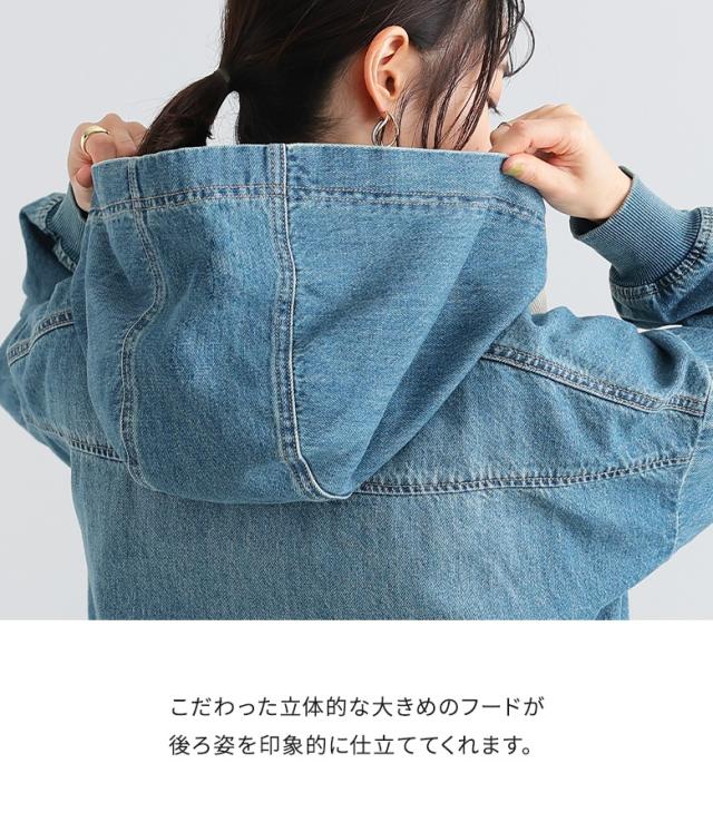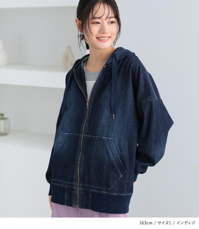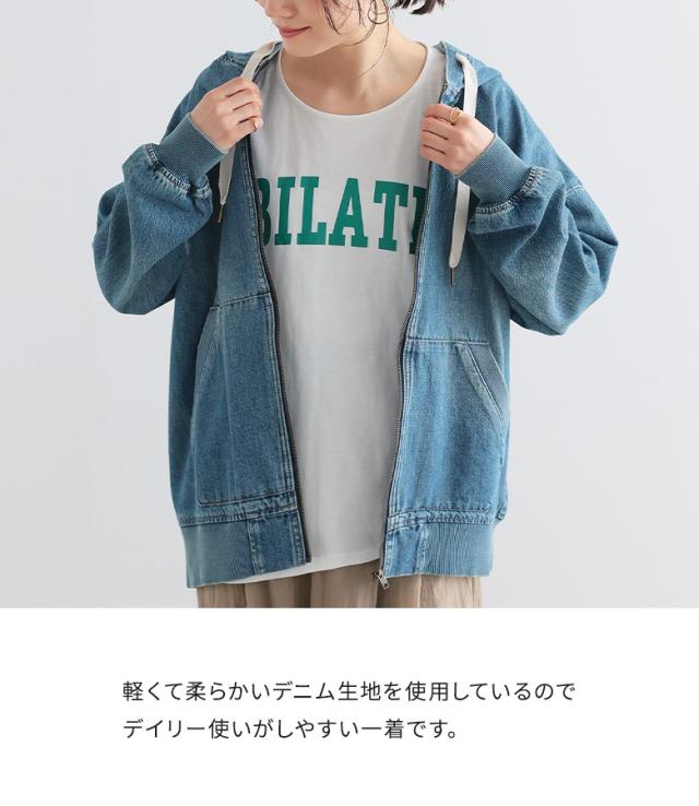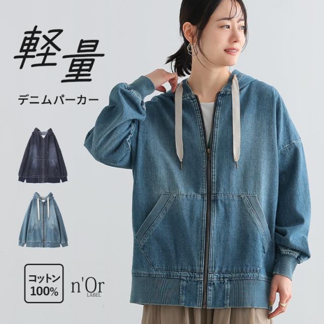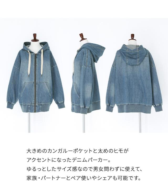 『コットンデニムジップアップパーカー』 【メール便不可】【30】[パーカー レディース ペア ユニセックス トップス ライトアウター 羽織 長袖 綿100% フルジップ 軽量 軽い 着回し ljn0123]