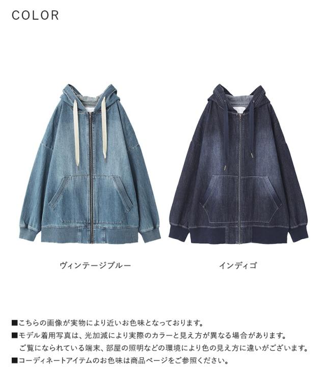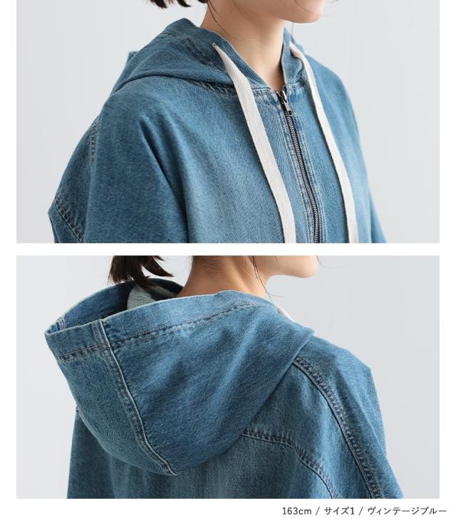 レディース ユニセックス 男女兼用 ペア リンクコーデ ギフトセット プレゼント お揃い おそろい トップス 羽織り ライトアウター アウター パーカー ジップアップ フード付き フーディー デニム デニムパーカー 長袖 ギャザー袖 リブ ドロップショルダー カンガルーポケット ポケット付き ギャザー 切り替え ステッチ 配色 無地 綿100% コットン100% コットンデニム ブラスト加工 おうちで洗える 軽量 軽い 春秋 カジュアル お出掛け 旅行 お買い物 着回し 大人女子 大人可愛い モード シンプル ラフ かっこいい マニッシュ Sサイズ Mサイズ Lサイズ LLサイズ 3Lサイズ XLサイズ ぽっちゃり 体型カバー 大きいサイズ 10代 20代 30代 40代 50代 60代 n'OrLABEL ノア—ルレーベル ブルー 青 ヴィンテージブルー 紺 ネイビー インディゴ インディゴブルー 【トップス】[ID]ljn0123