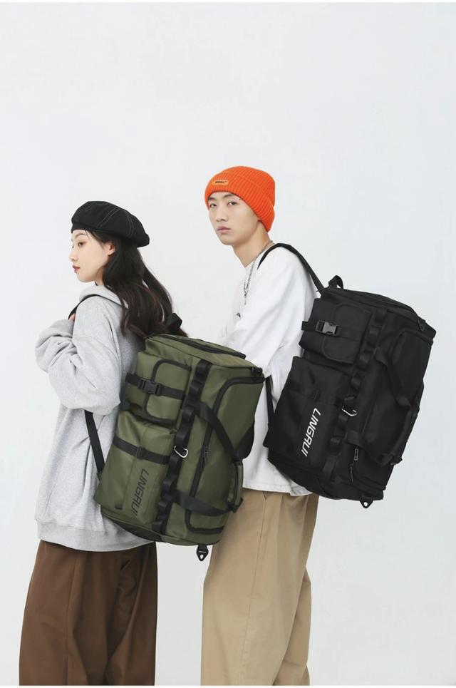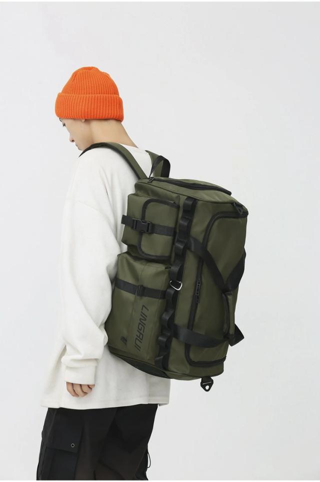 容量約35Lの大きめサイズ! 最大の特徴は、手提げ、ショルダー、リュックの3WAY機能! 取り外し可能なベルト付きで、長さを調節する事でリュックとしてもショルダーバッグとしてもお使い頂けます! また、埋もれがちな小物の収納に丁度良いポケットを複数設ける事でよりアイテム管理がしやすくなりました! 旅行・アウトドア・ビジネス・修学旅行・自然学校、また、防災用など、様々な用途でご利用いただけます。