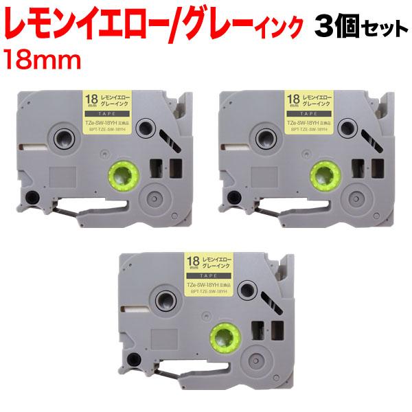 【メール便送料無料】ブラザー用(Brother用) ピータッチ 互換 テープ TZe-SW-18PH (18mm/レモンイエローテープ/グレーインク) お得な3個セット