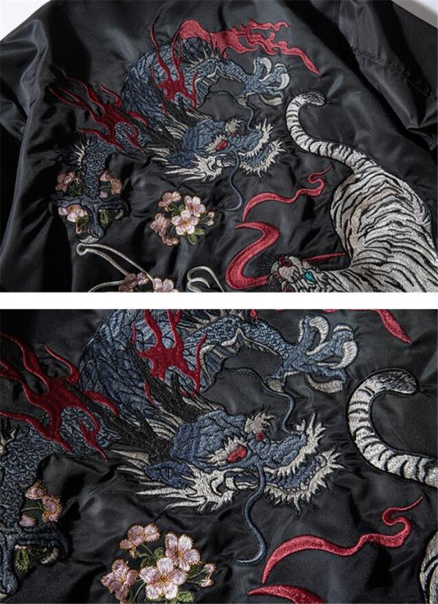 ◎クラシックなデザイン、個性の龍虎刺繍が施されて、バランスが良いシルエット、無地で、コーディネートに合わせやすいです。