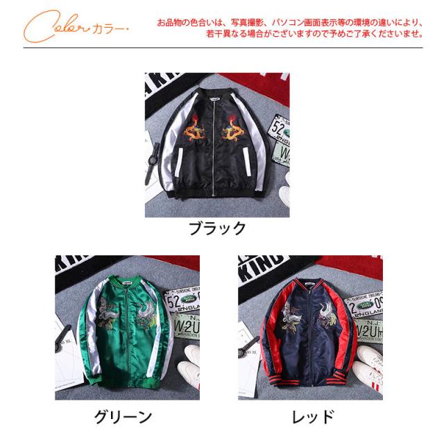 スカジャン メンズ アウター レディース 刺繍 和柄 鷹 龍虎 鳳凰 羽織り サテン生地 ジャケット ブルゾン 着痩 スタジャン