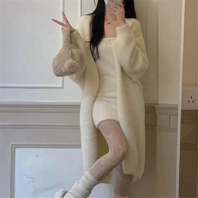 着痩せ効果のあるロングニットカーディガン。