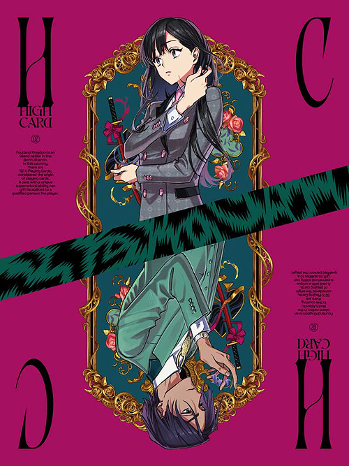 命運を賭けたカード争奪戦、開幕! トムス・エンタテインメント×河本ほむら×武野光原作の『HIGH CARD』がTVアニメ化! Blu-ray第2巻。 監督に『長門有希ちゃんの消失』『サクガン』などの和田純一、脚本に『京都寺町三条のホームズ』の山下憲一や犬飼和彦、永井真吾、キャラクターデザインには『ギヴン』作画監督を務めた河野のぞみを起用! さらに、総作画監督は河野のぞみと『ギヴン』永田陽菜、アニメーション制作は『海辺のエトランゼ』『潔癖男子! 青山くん』などのスタジオ雲雀が担当! 一攫千金を狙って乗り出したカジノで遭遇した事件をきっかけに《ハイカード》にスカウトされ、老舗自動車メーカー・ピノクル社オールドメイド支店の営業見習いとして働くことになる主人公 フィン・オールドマン役に佐藤元、ピノクル社オールドメイド支店の営業担当であり、フィンの教育係となるクリス・レッドグレイヴに増田俊樹、ピノクル社の社長の息子で、オールドメイド支店の店長にして《ハイカード》のリーダー レオ・コンスタンティン・ピノクル役に堀江瞬、ピノクル社オールドメイド支店の経理兼事務職員で《ハイカード》の紅一点 ウェンディ・サトー役に白石晴香、システム管理兼営業担当で植物を愛するインテリ ヴィジャイ・クマール・シン役に梅原裕一郎を起用! さらに、小野大輔、関俊彦、関智一、森川智之など豪華声優陣が多数出演! 第4話〜第6話収録。