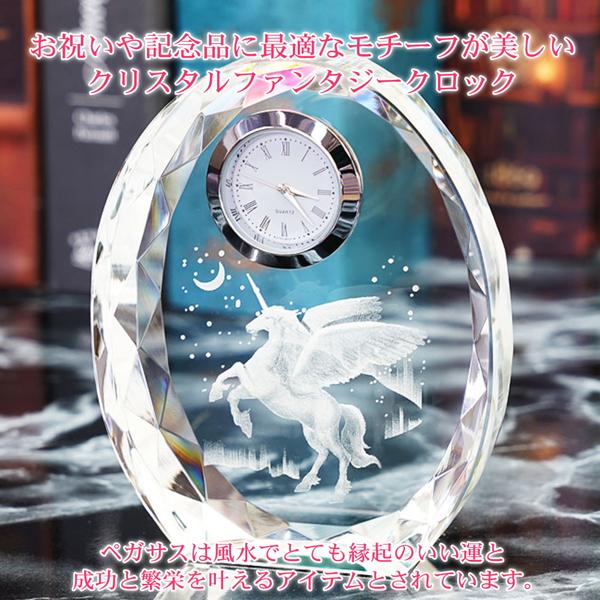 クリスタル 置き時計 ペガサス 名入れメモリアル 卓上時計 置時計 還暦祝い 退職祝い 長寿祝い 表彰トロフィー オリジナル ギフト ファンタジークロック