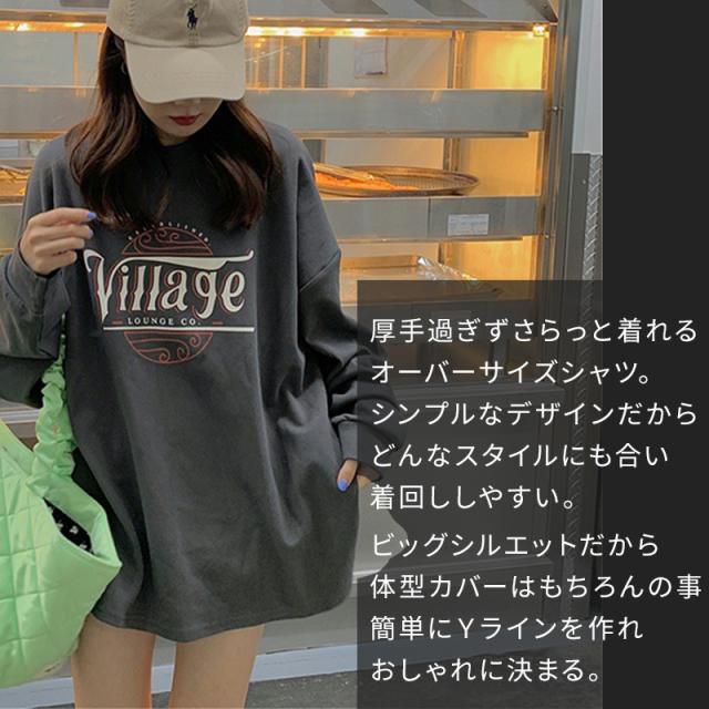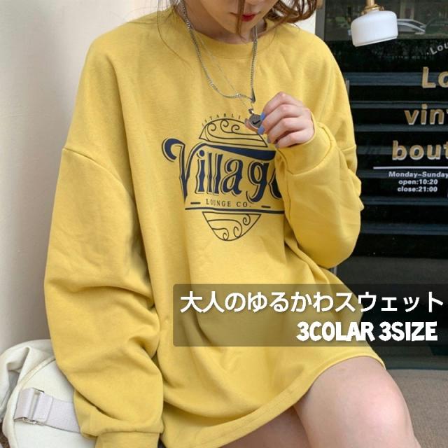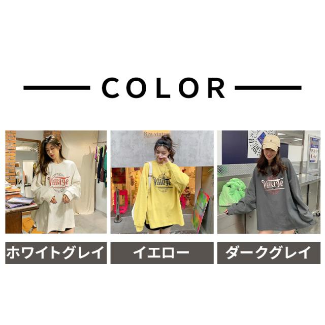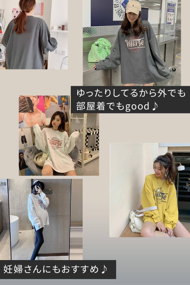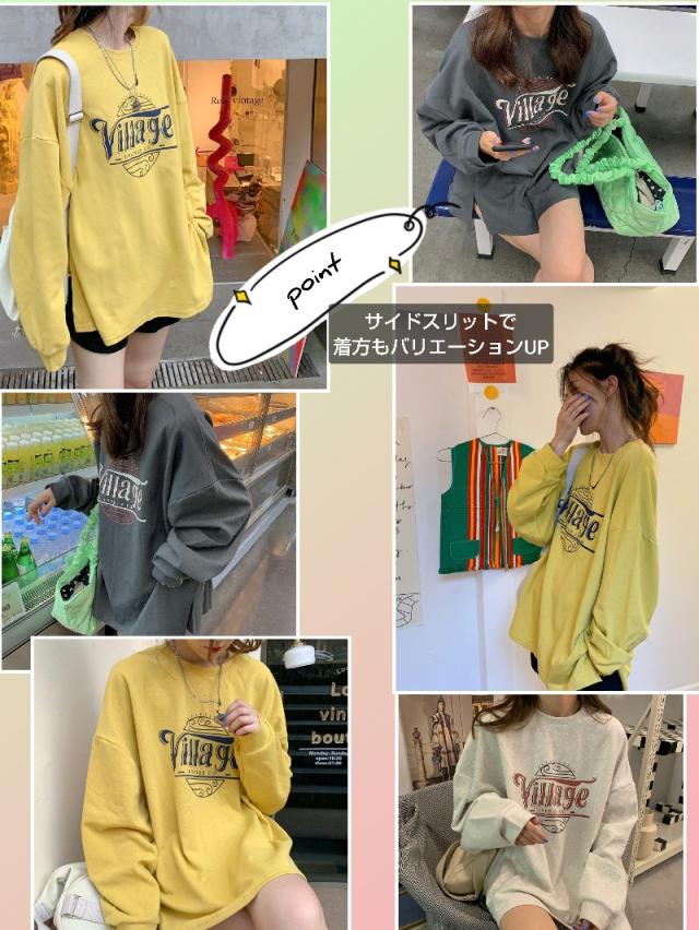 スウェット トレーナー トップス レディース 秋 薄手 ロング 大きいサイズ 体型カバー カットソー 韓国 オルチャン おしゃれ かわいい シンプル ゆったり ルーズ オーバーサイズ ビッグシルエット サイドスリット M L XL イエロー グレー ホワイト 20代 30代 40代 送料無料