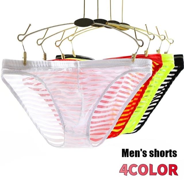 ブリーフ パンツ ショーツ メンズ 男性 下着 インナー アンダーウェア シースルー 薄手 立体縫製 総柄 ボーダー ブラック