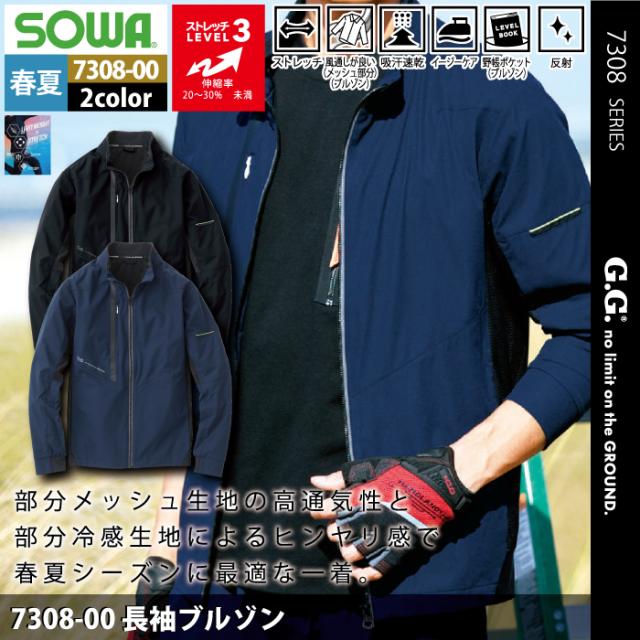 桑和 SOWA 作業服 春夏用 7308-00 長袖ブルゾン 4L