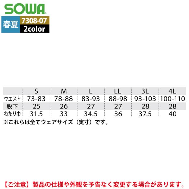 桑和 SOWA 作業服 春夏用 7308-07 ハーフパンツ S-LL