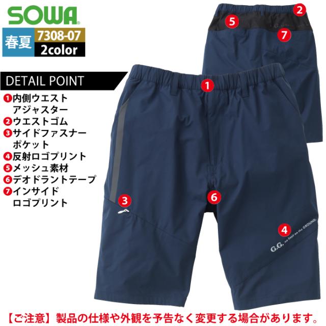 桑和 SOWA 作業服 春夏用 7308-07 ハーフパンツ 3L