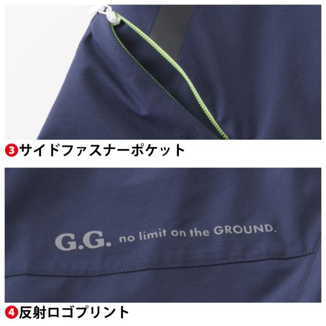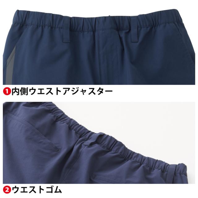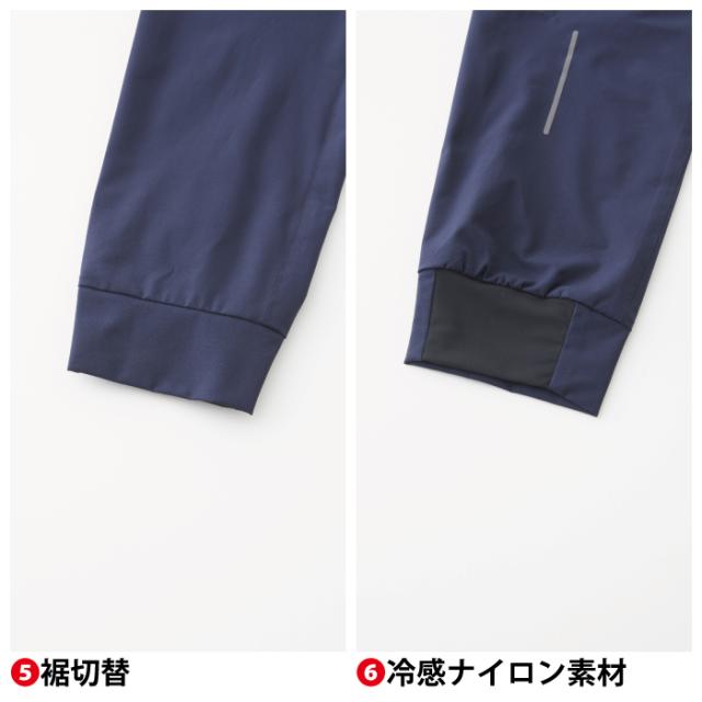 ◇内側ウエストアジャスター・ウエストゴム・サイドファスナーポケット・反射ロゴプリント・裾切替・冷感ナイロン素材・デオドラントテープ・反射プリント