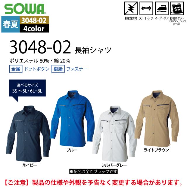 桑和 SOWA 作業服 3048-02 長袖シャツ SS-LL 作業服 春夏用