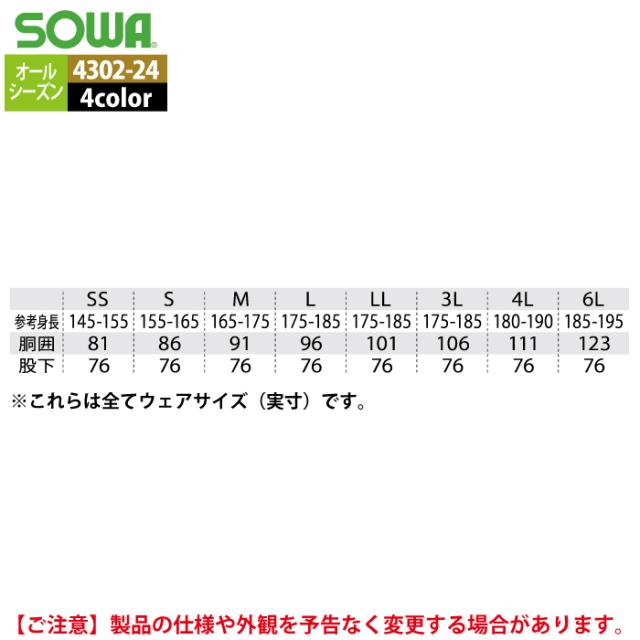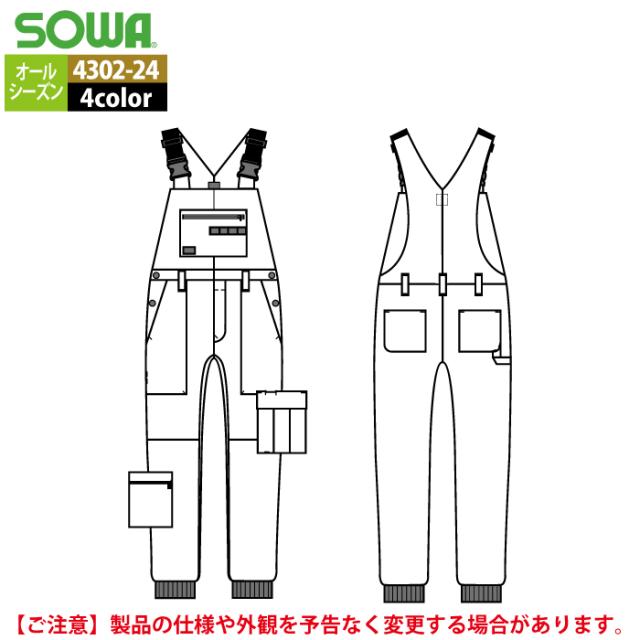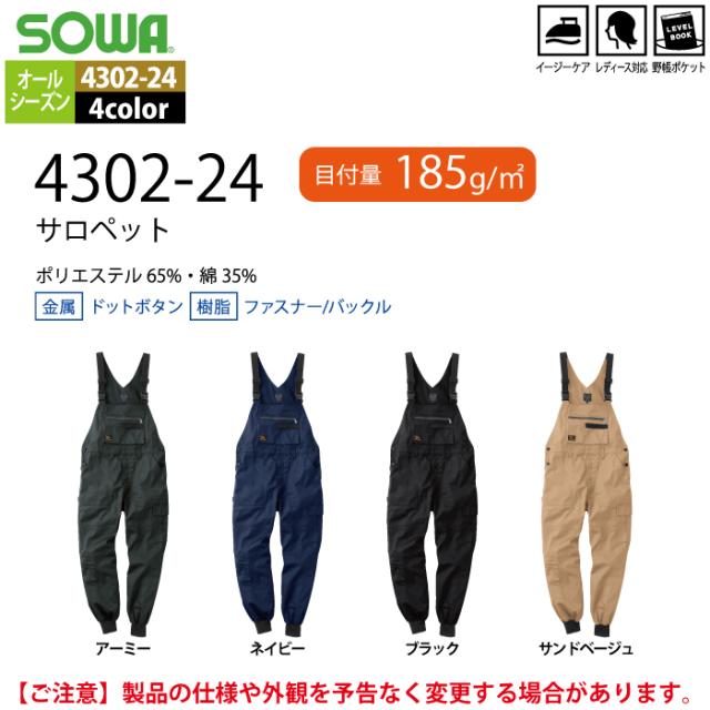 桑和 SOWA 作業服 春夏用 4302-24 サロペット SS-LL