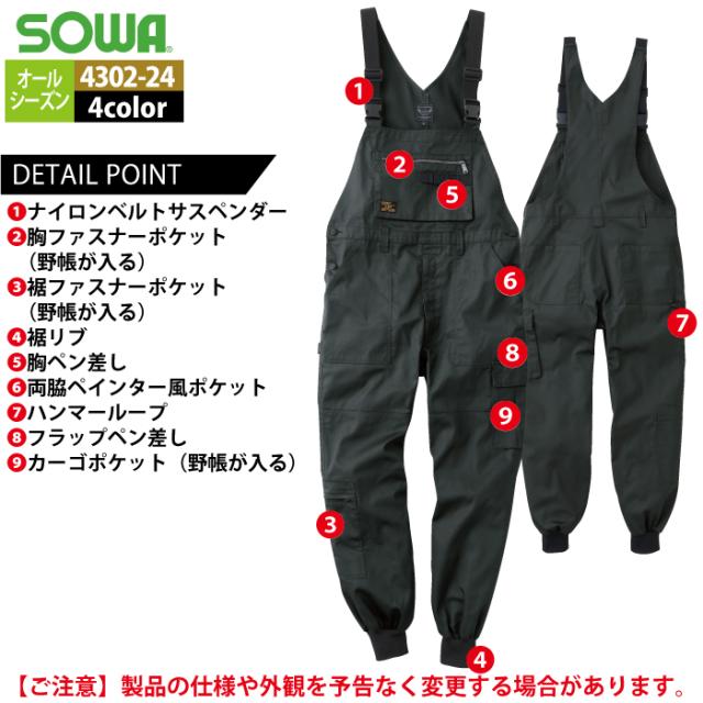 桑和 SOWA 作業服 春夏用 4302-24 サロペット 3L