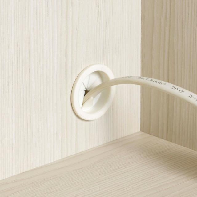 スライド棚収納部には、壁面コンセントを利用しやすい位置にコード穴が1か所ずつ、計2か所に付いています。