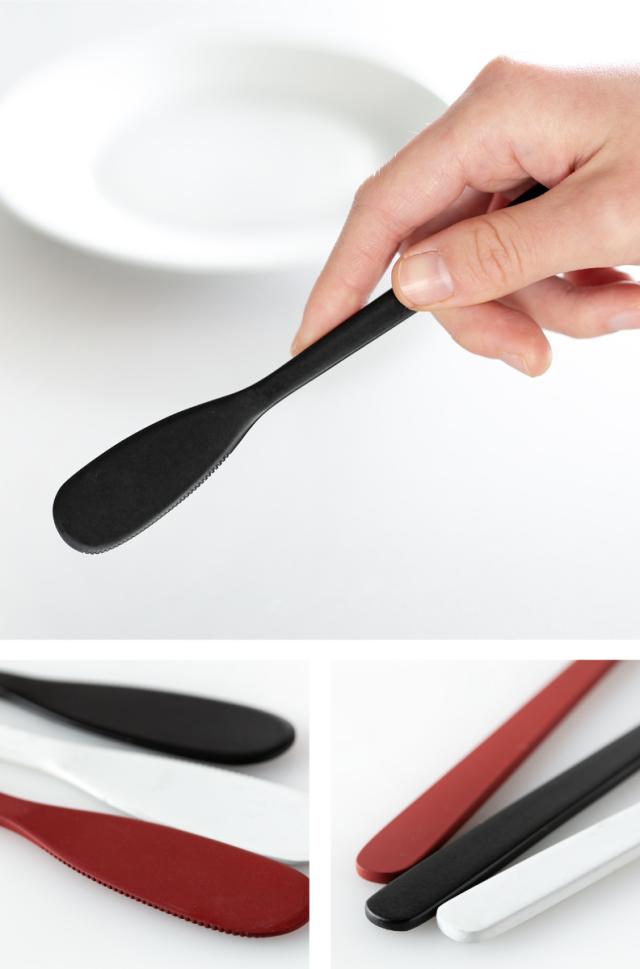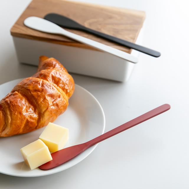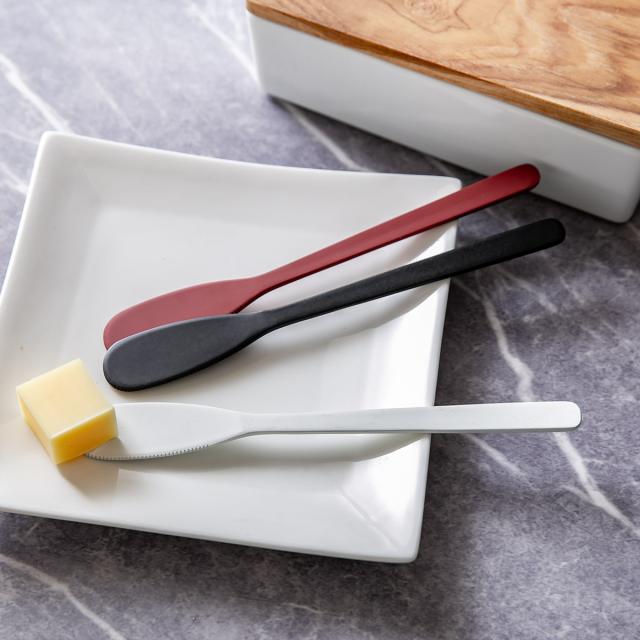 フラットな形状が使いやすい、バターナイフです。角度のないまっすぐな形なのでテンションがかかりやすく、軽い力でバターをすくえます。ピーナッツバターやクリームチーズ、パテなど少し硬さのあるものを取る時にも使いやすいです。
