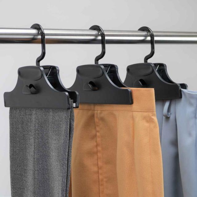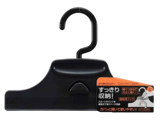 ハンガー スラックス がっちりクリッパー ( クリップ 衣類収納 洋服ハンガー 連結 滑り止め 洋服 洗濯 回転 省スペース 収納 シンプル ブラック )