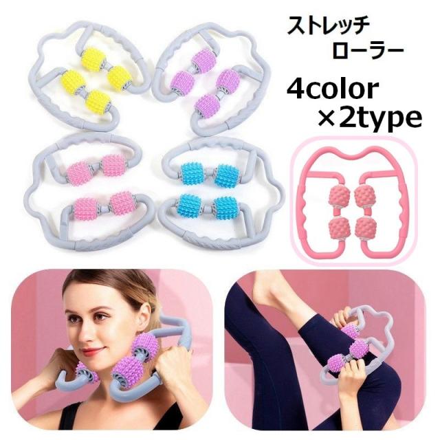 ストレッチローラー 健康器具 グリップ付き 持ち手付き ハンドルタイプ 突起 ポツポツ付き ツボ押し 回転 筋膜リリース リフレ