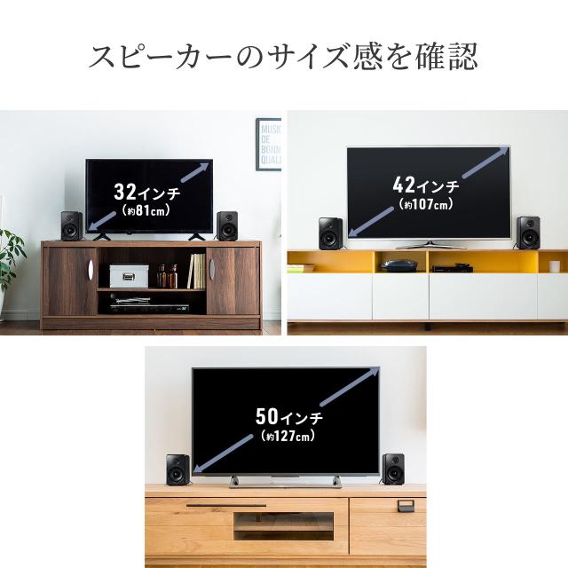 - リビングでテレビからの音が遠い為、購入しました。サウンドバー+今回のスピーカーで音の範囲が広がりました。満足です。