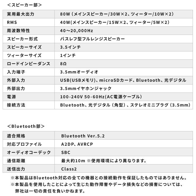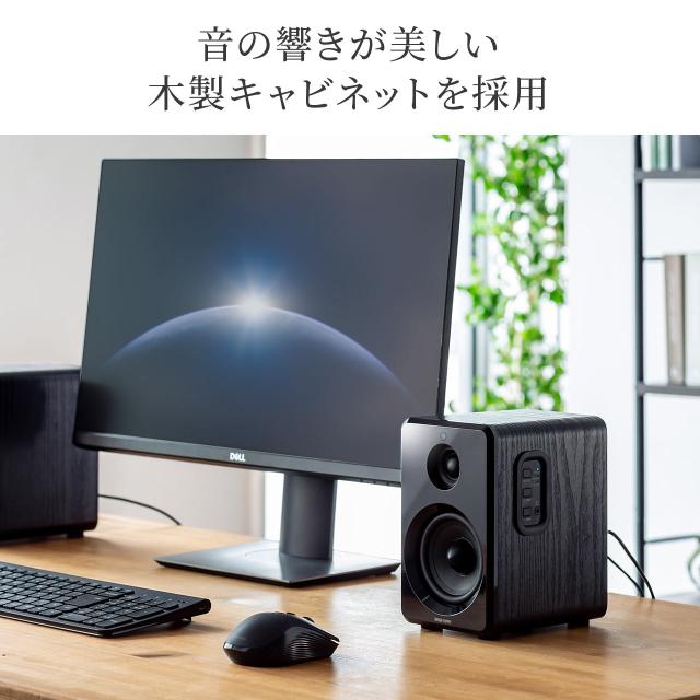 ●大迫力の重低音から透明感のある高音まで美しく再現する実用最大出力80Wの木製スピーカーです。●Bluetooth5.0に対応し、スマートフォンやタブレットの音楽をワイヤレスで聴くことができます。