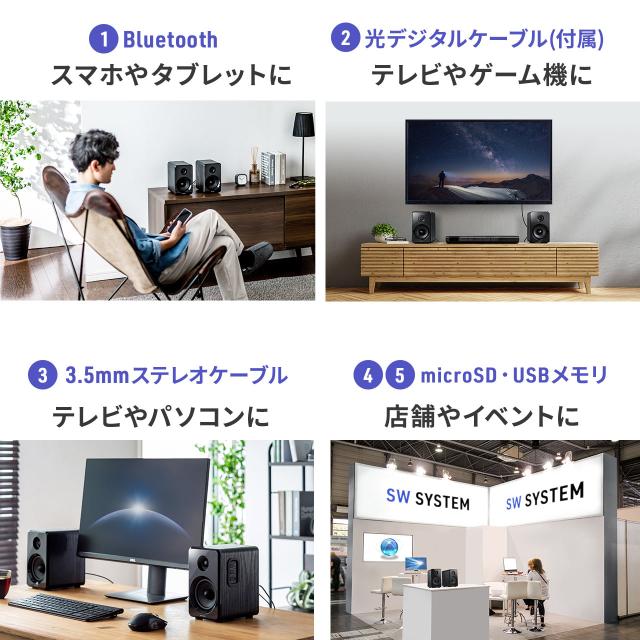 Bluetoothスピーカー PCスピーカー 3.5mm/光デジタル対応 高出力80W USB/microSD対応[400-SP104]